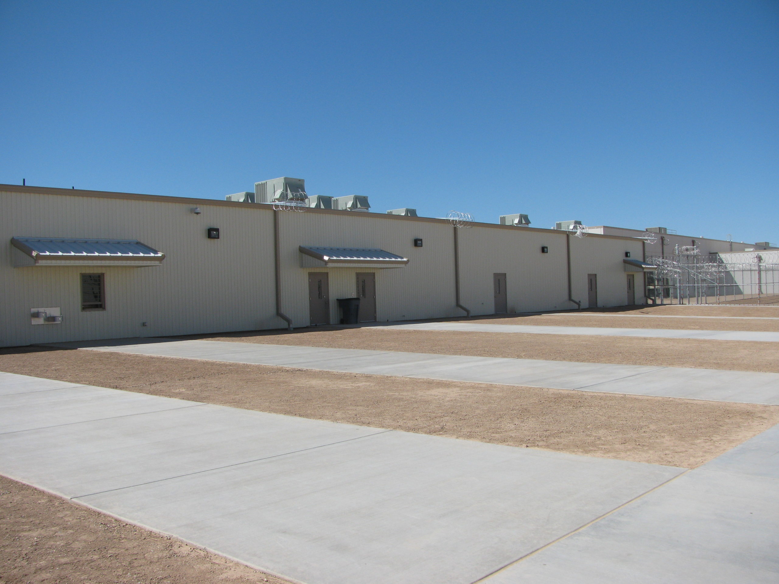 Federal Detention Facility. Design-build. The 200,000 SF, 1,072-bed prison includes 204 cells and eight 96-bed dormitories. It also houses food service, commissary, warehouse, laundry, administration, visitors, medical and intake facilities.