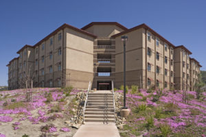 HVAC SYSTEM:4 pipe Chilled and Hot water system with high efficiency boilers, vertical 4 pipe fan coils in BEQ rooms, central bathroom exhaust systems, DDC Controls. LEED Gold