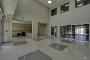 This design-build project is a three-story, 67,346-square-foot building which houses 112 personnel. The barracks consists of 56 apartments. The units are a mixture of two-bedroom/two-bathroom and two-bedroom/one-bathroom modules. Each unit includes a living area and kitchen. The building includes a prominent main entrance, lobby, elevator and multi-purpose room. LEED Gold