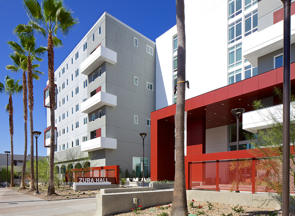 Design/build complete renovation of the existing SDSU Zura Hall Residence Dormitory that was originally built in 1968. The new structure includes 112,844 sq ft of space and consists of 310 student rooms, lounges and study rooms, restrooms, offices, storage, and faculty living. LEED Silver