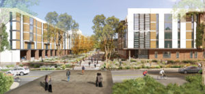 The new Residence Hall Community consists of two residential halls and one dining facility. Dundee North and South are a pair of buildings that provide 800 undergraduate beds and 20 staff beds in five stories of wood framed structure over a two-story concrete podium. The ground level provides common amenity spaces for residents. Glasgow is a two-story, 900-seat dining commons with instructional food preparation platforms and a campus bakery. Site development connects to the surrounding campus environment by pedestrian walkways and bike friendly pathways approximately 175,000 GSF. This project acheived LEED Gold.