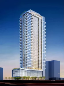 Design-Build Mixed-use multi-family apartment building comprised of 389 units, 40-story residential building including a 6-story podium in addition to 4 levels of below grade parking. The podium at ground level consists of retail space and residential lobby with 4-stories of parking above and a terrace featuring indoor and outdoor residential amenities at the top of the podium. Above the podium, beginning at level 7 is a 33-story residential tower featuring indoor and outdoor residential amenities at level 40.