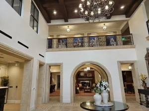 Hacienda at Mission San Luis Rey is a senior living community located in Oceanside, California, situated on an eight‑acre parcel adjacent to the historic Mission San Luis Rey. Architecturally inspired by the Mission Revival style, the community spans approximately 249,560 square feet and comprises 213 residences, including 103 independent living, 86 assisted living, and 24 memory care units (with several spaces reserved for Mission friars).