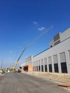 Project Abby facility located on the NW corner of Merrill Ave & Vineyard Ave in Ontario, CA. The proposed building is a multi-story warehouse facility which covers 823,103 square feet. Internally, the facility is comprised of a large ground-floor office, ground floor warehouse space, and 4 elevated robotics-occupied sortation floors.