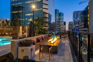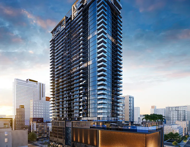 Developed by a joint venture of Toll Brothers Apartment Living and PGIM Real Estate, The Lindley is a striking 37‑story, approximately 800,000 sq ft luxury mixed-use high-rise at 1331 Columbia Street, straddling San Diego’s Little Italy and Columbia District. As Toll Brothers’ flagship multifamily debut in San Diego, it comprises around 422 residential units—ranging from studios and one- and two-bedrooms to penthouses and townhomes—alongside 60 extended-stay hotel units (2-8 floors), a rare hospitality element woven into the tower’s fabric. The building features about 10,500–12,000 sq ft of ground-floor retail space surmounted by a six-story podium capped with a 17,000 sq ft landscaped amenity terrace offering a resort-style pool, spa, lounges, and lush seating areas. Construction kicked off in mid-2022; the building topped out in April 2024, welcomed its first tenants in late 2024, and celebrated its grand opening in March 2025.